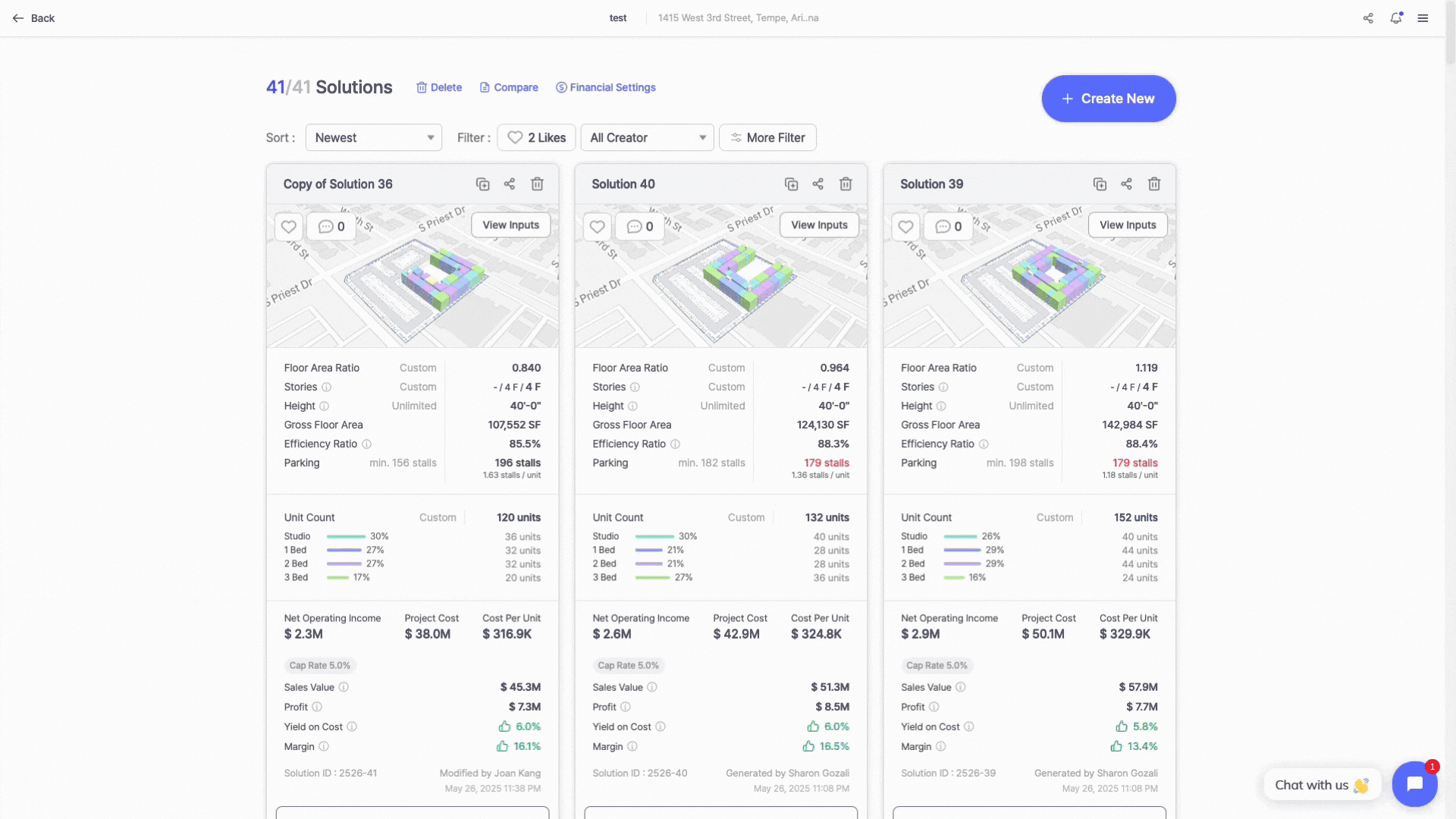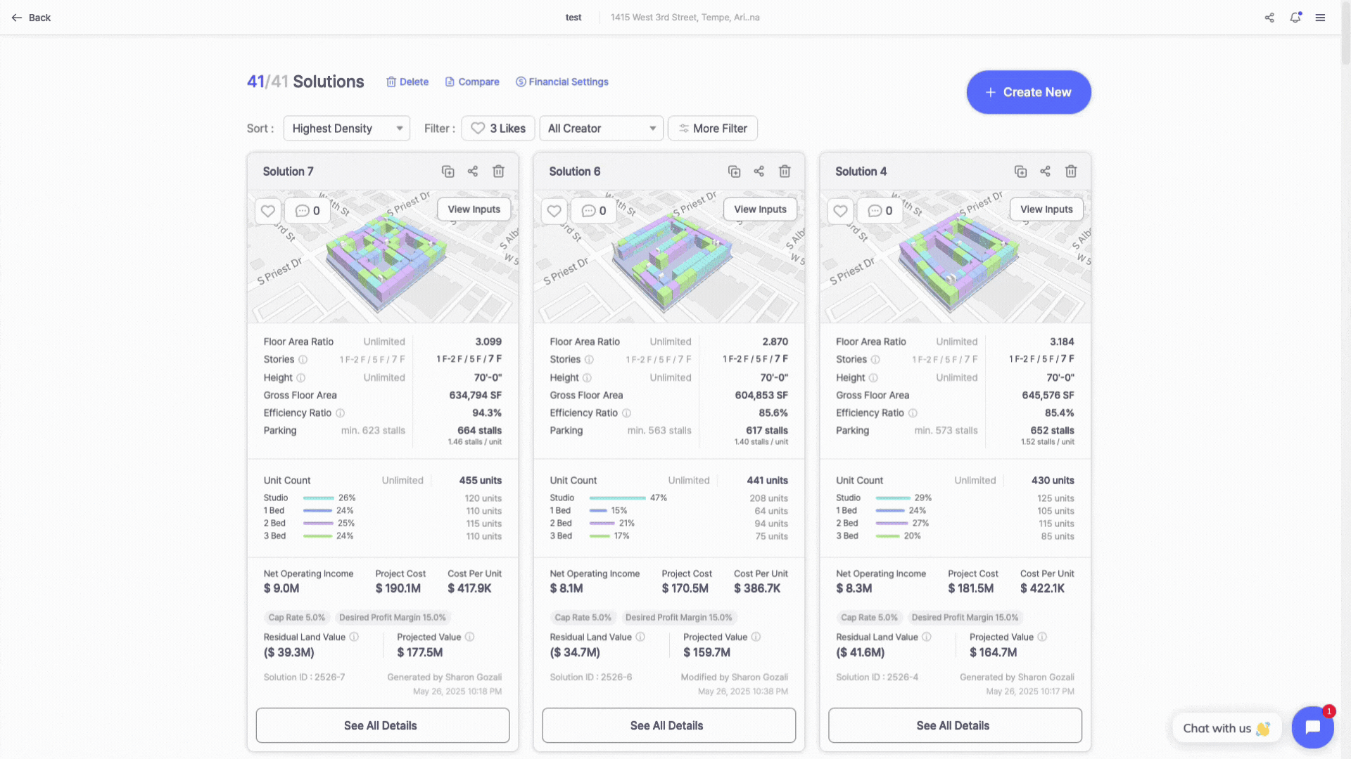 Zenerate allows you to sort project solutions by both design metrics and financial performance, giving development teams the flexibility to prioritize what matters most.